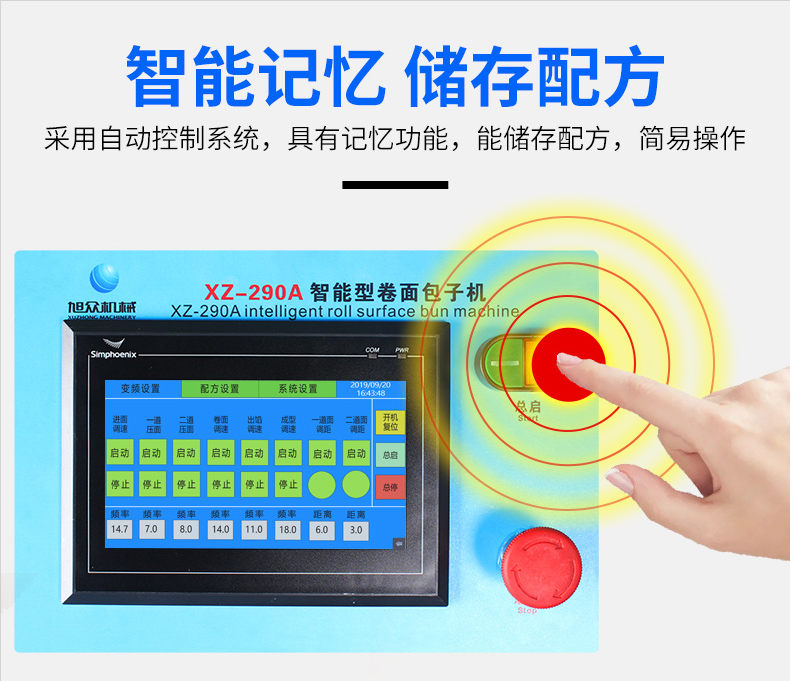 XZ-290A智能型卷面包子機,仿手工智能包子機。操作簡單、精準控制、快速成型、模擬人工。好機器,表里如一,專注品質(zhì)機器,客戶現(xiàn)場試機。一臺包子機輕松解決手工和面/包餡/人工效率低,用人成本高等一系列問題。