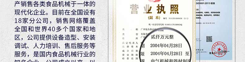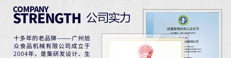 廣州旭眾食品機械有限公司是一家集科研開發(fā),生產設計,營銷服務為一體的現代化生產企業(yè)?,F代化生產車間,精湛制造技術,所產機械歷經市場重重考驗,不斷贏得海內外客戶的贊譽。