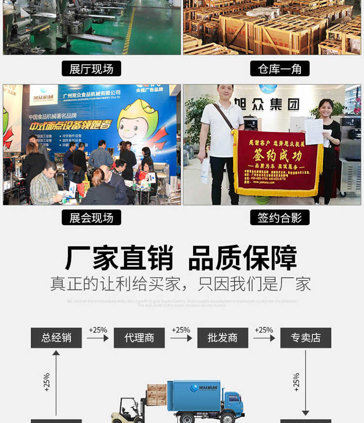 廣州旭眾食品機(jī)械有限公司是一家集科研開發(fā),生產(chǎn)設(shè)計(jì),營銷服務(wù)為一體的現(xiàn)代化生產(chǎn)企業(yè)。現(xiàn)代化生產(chǎn)車間,精湛制造技術(shù),所產(chǎn)機(jī)械歷經(jīng)市場(chǎng)重重考驗(yàn),不斷贏得海內(nèi)外客戶的贊譽(yù)。