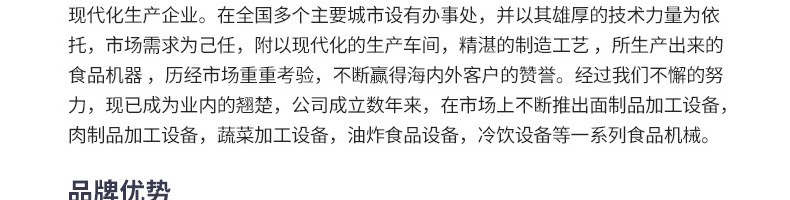 廣州旭眾食品機械有限公司是一家集科研開發(fā),生產(chǎn)設(shè)計,營銷服務(wù)為一體的現(xiàn)代化生產(chǎn)企業(yè)?,F(xiàn)代化生產(chǎn)車間,精湛制造技術(shù),所產(chǎn)機械歷經(jīng)市場重重考驗,不斷贏得海內(nèi)外客戶的贊譽。