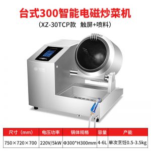 XZ-30TCP臺式300智能電磁炒菜機(jī)(觸屏+噴料),可以實(shí)現(xiàn)自動化烹飪過程的智能化設(shè)備,語音播報、自動噴料、旋轉(zhuǎn)翻炒、快速出菜。實(shí)現(xiàn)自動化烹飪,新一代微電腦操控智能烹飪設(shè)備、顛覆傳統(tǒng)炒菜模式。5000W猛火爆炒美食更鮮香