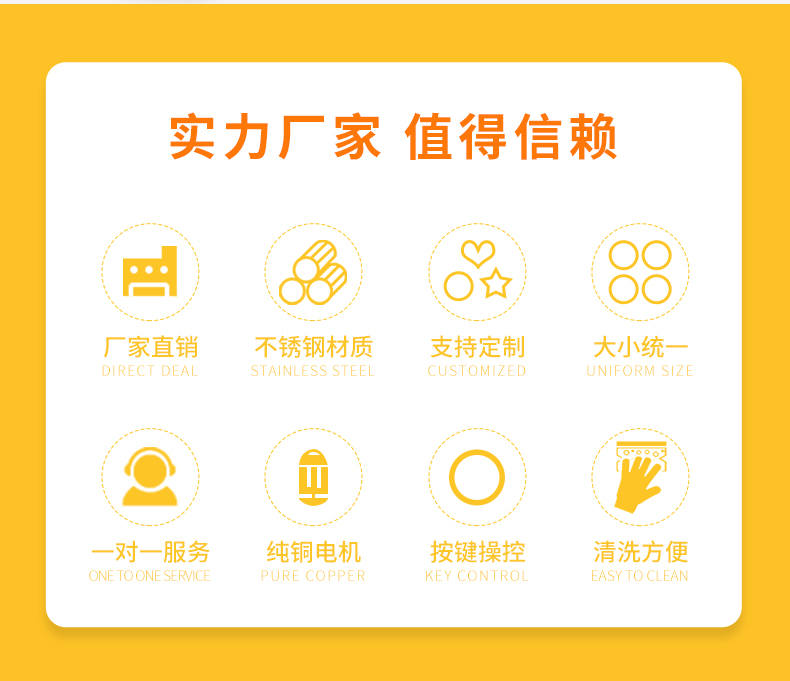 廣州旭眾食品機(jī)械有限公司是一家集科研開(kāi)發(fā),生產(chǎn)設(shè)計(jì),營(yíng)銷(xiāo)服務(wù)為一體的現(xiàn)代化生產(chǎn)企業(yè)?,F(xiàn)代化生產(chǎn)車(chē)間,精湛制造技術(shù),所產(chǎn)機(jī)械歷經(jīng)市場(chǎng)重重考驗(yàn),不斷贏得海內(nèi)外客戶的贊譽(yù)。