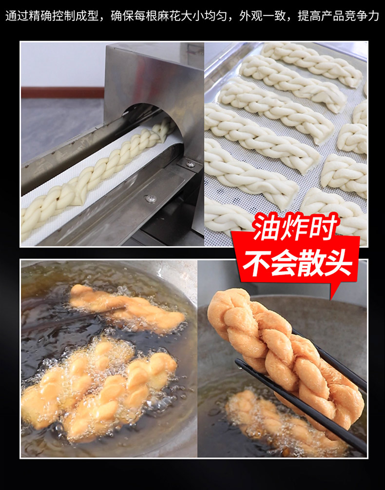 XZ-MH-200麻花機(jī),技術(shù)支持、贈(zèng)送配方、支持定制,1小時(shí)加工60斤麻花。切段均勺、且不粘面,麻花長(zhǎng)短可調(diào)??赏ㄟ^調(diào)節(jié)切刀時(shí)間、控制麻花的長(zhǎng)度。通過精確控制成型,確保每根麻花大小均勻,外觀一致,提高產(chǎn)品競(jìng)爭(zhēng)力。