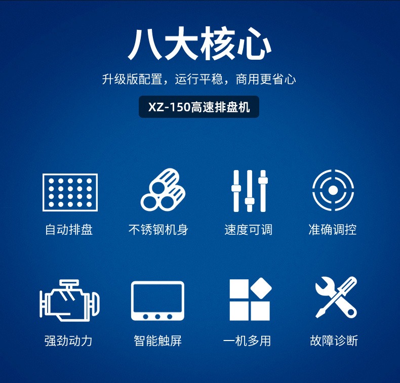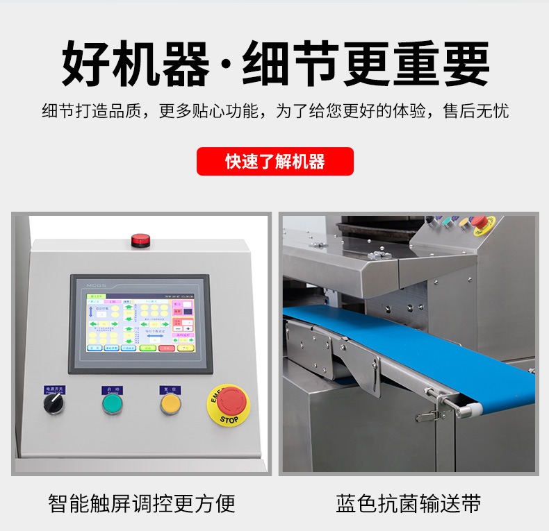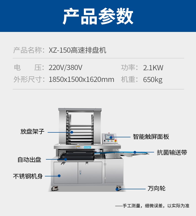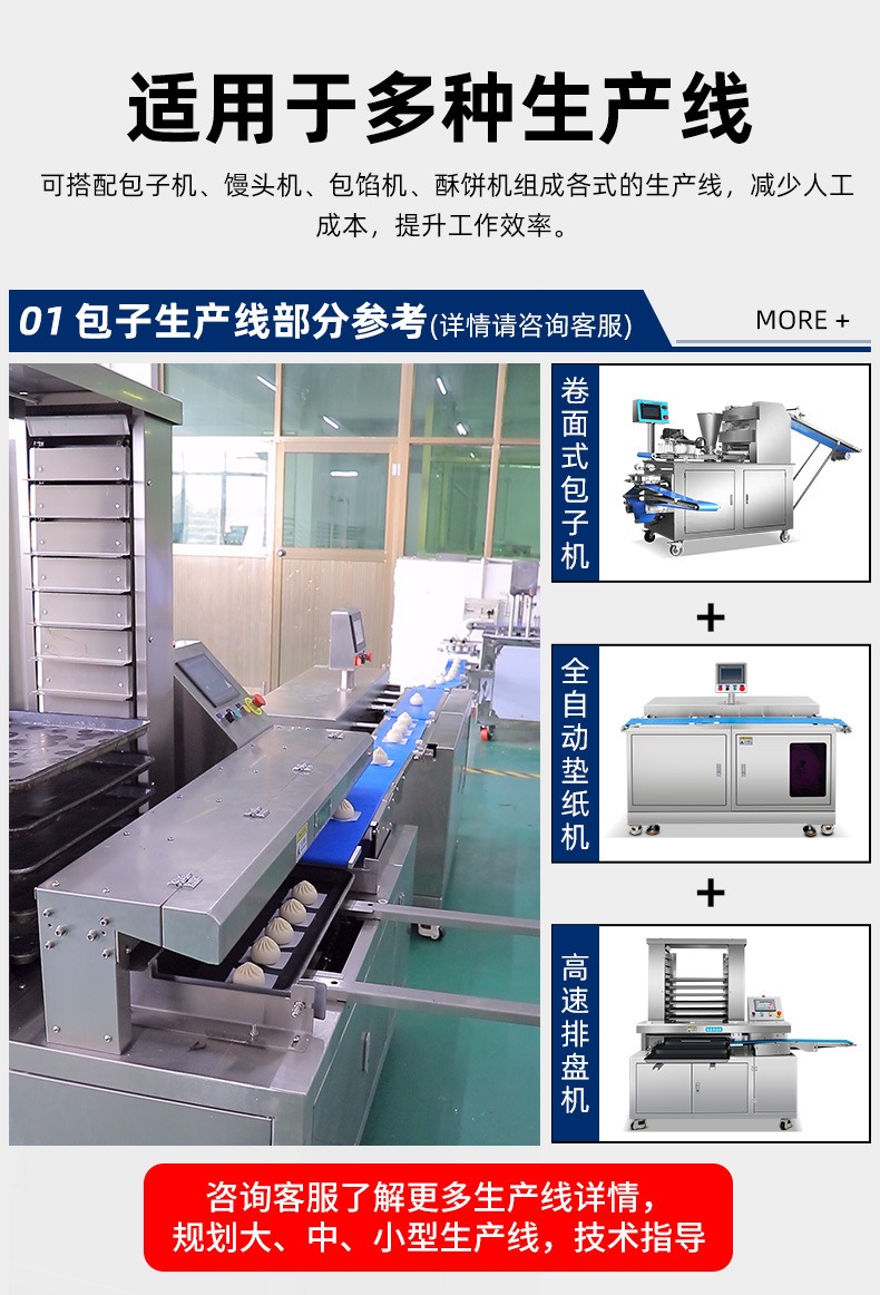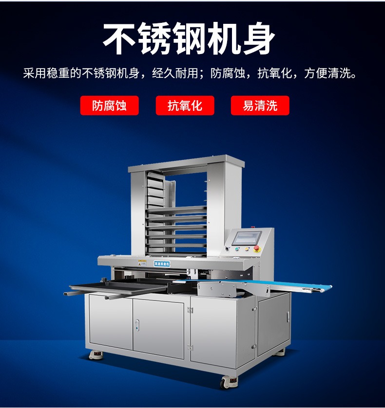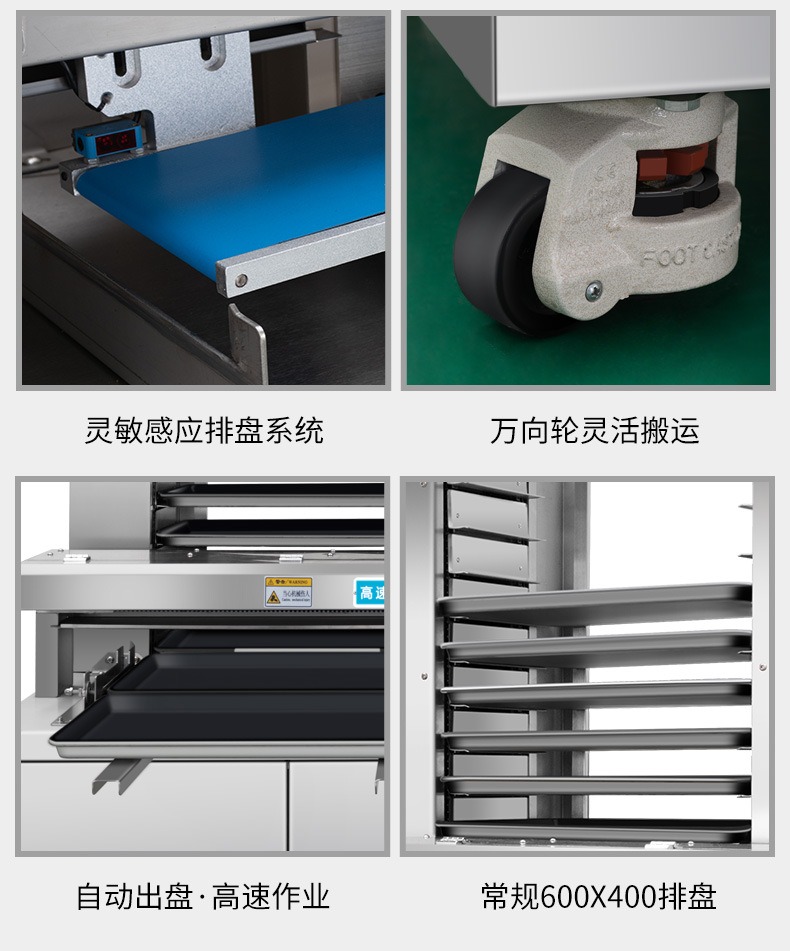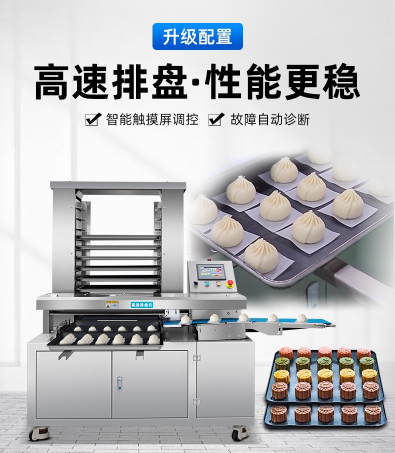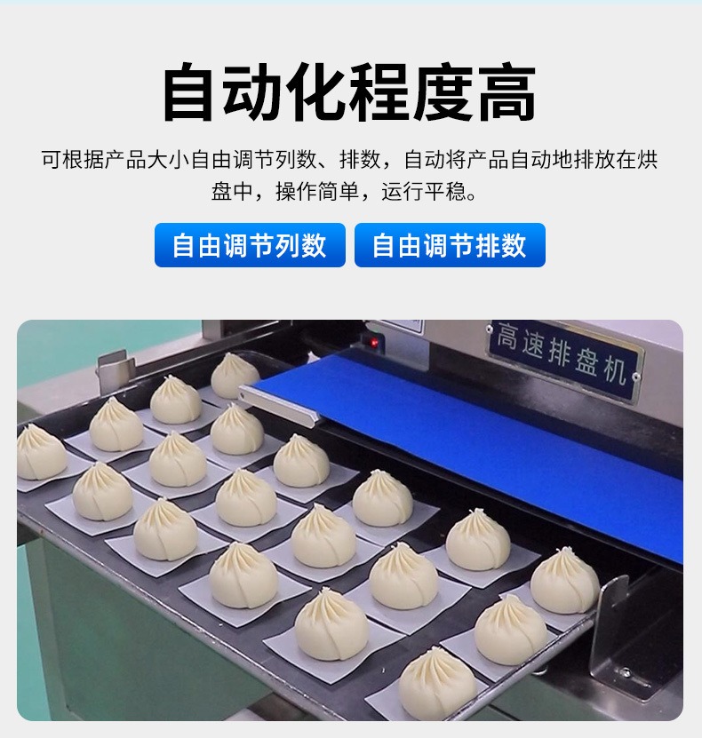 多功能商用高速排盤機,自動化程度高,可根據(jù)產(chǎn)品大小自由調(diào)節(jié)列數(shù)、排數(shù),自動將產(chǎn)品自動地排放在烘盤中,操作簡單,運行平穩(wěn)。智能觸屏面板。控制系統(tǒng)由三菱PLC和進口觸摸屏組成,操作簡單方便。具有故障自動診斷,一目了然。