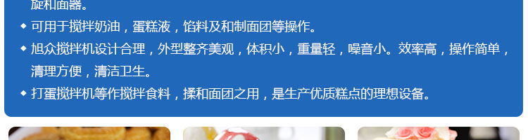 SZM10、15、20、25、30攪拌機(jī)系列,可用于攪拌奶油、蛋糕液、餡料及和制面團(tuán)等操作。打蛋攪拌機(jī)等作攪拌食料、揉和面團(tuán)之用,是生產(chǎn)優(yōu)質(zhì)糕點的理想設(shè)備,適用于酒店、飯店、學(xué)校部門、面包屋以及食品廠家。