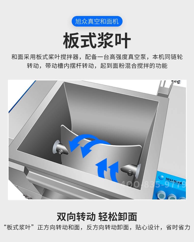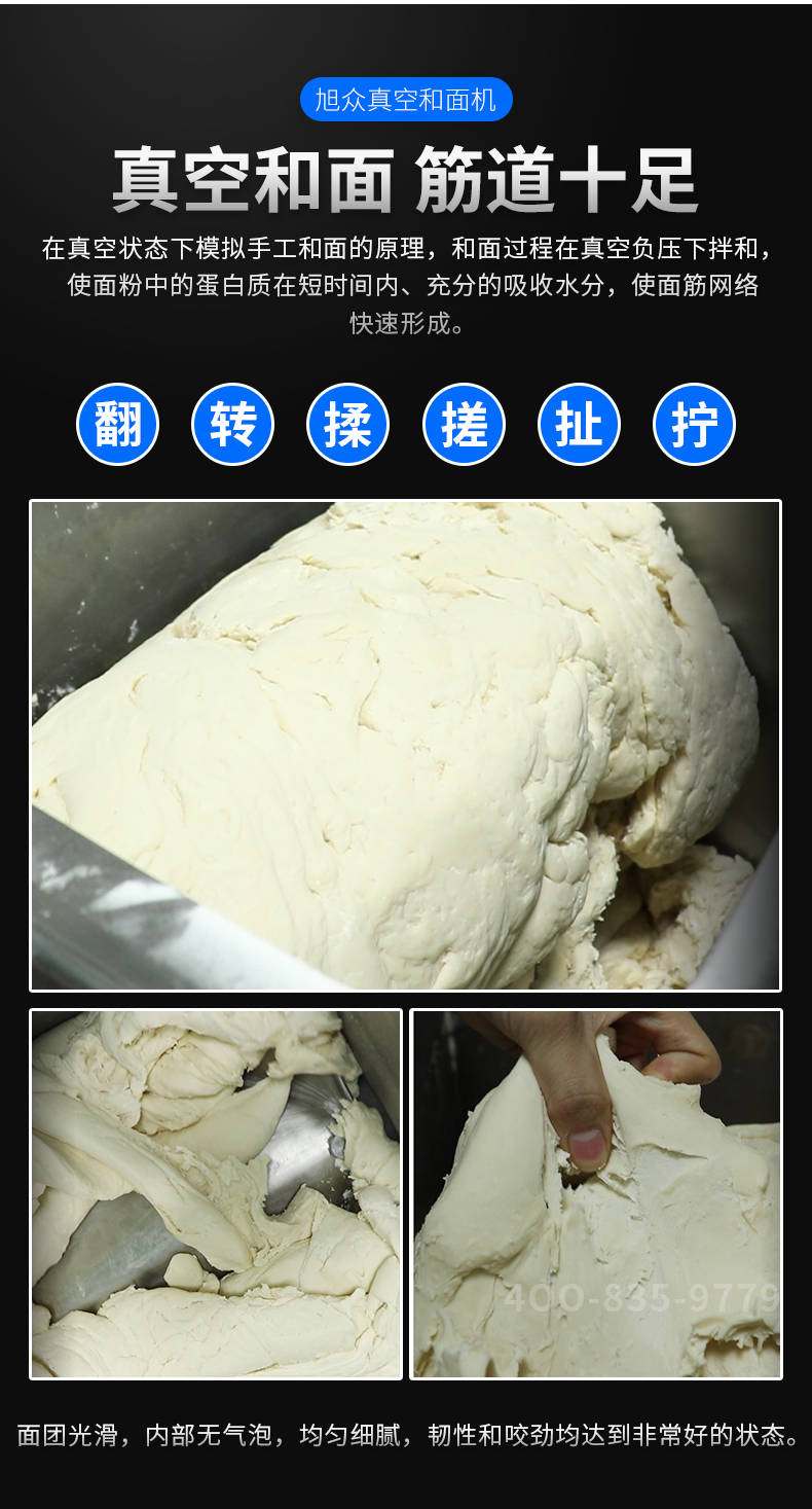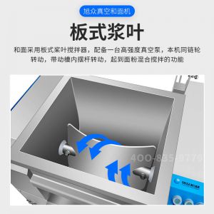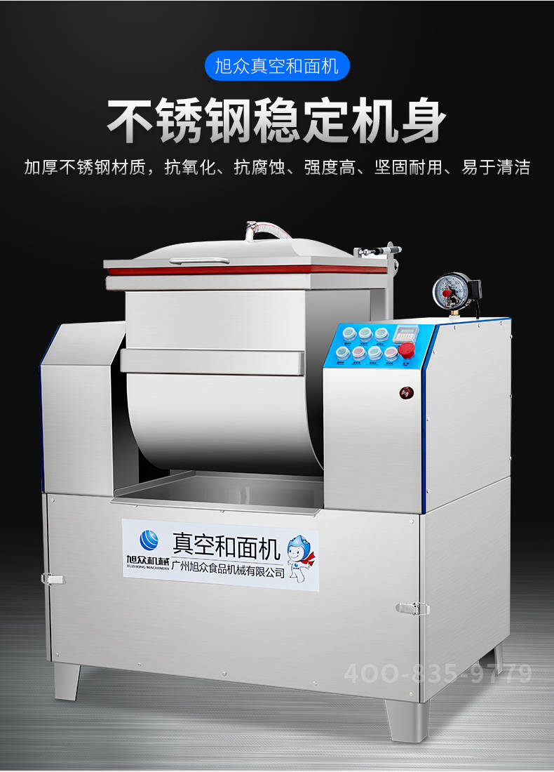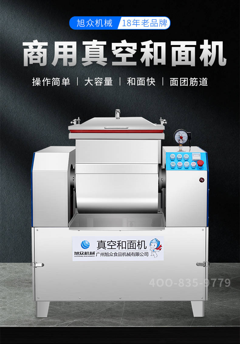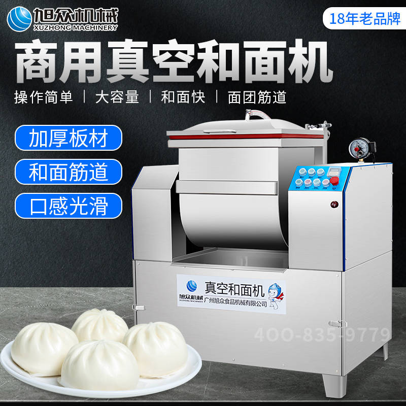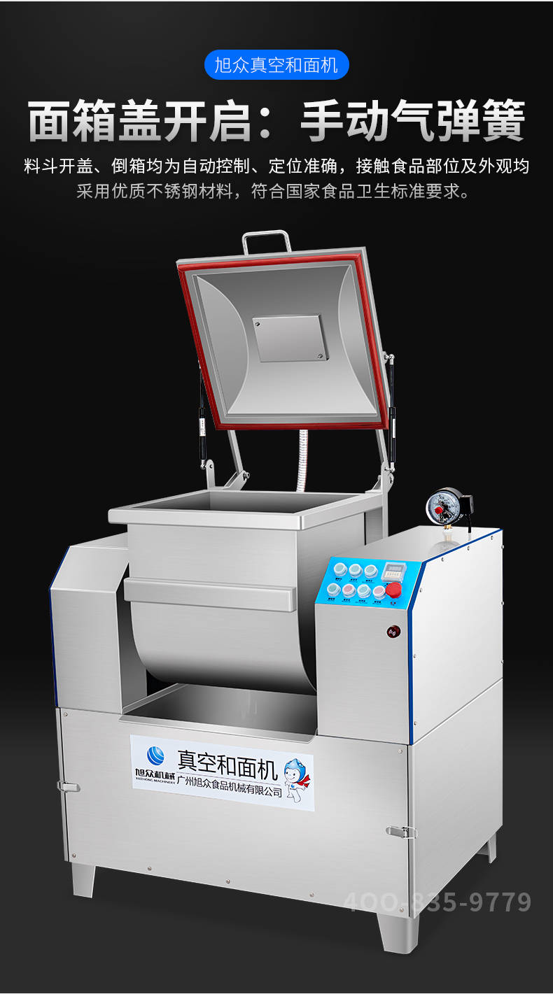XZZK-25真空和面機(jī),商用真空和面機(jī),操作簡單、大容量、和面快、面團(tuán)筋道。在真空狀態(tài)下模擬手工和面的原理,和面過程在真空負(fù)壓下拌和,使面粉中的蛋白質(zhì)在短時間內(nèi)、充分的吸收水分,使面筋網(wǎng)絡(luò)快速形成。
