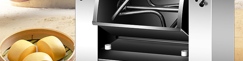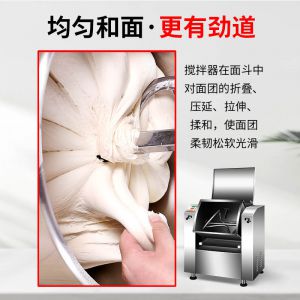 低噪音和面機,利用攪拌器的轉(zhuǎn)動,使面粉和水在面斗中形成小顆粒,粘黏形成大面團塊。大容量翻轉(zhuǎn)面斗,采用優(yōu)質(zhì)不銹鋼焊接制造,防腐蝕,食品接觸安全,符合食品生產(chǎn)安全標(biāo)準(zhǔn)。