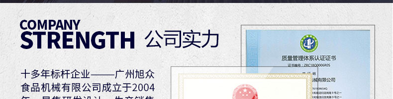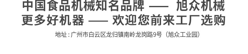 廣州旭眾食品機(jī)械有限公司是一家集科研開發(fā),生產(chǎn)設(shè)計(jì),營(yíng)銷服務(wù)為一體的現(xiàn)代化生產(chǎn)企業(yè)。現(xiàn)代化生產(chǎn)車間,精湛制造技術(shù),所產(chǎn)機(jī)械歷經(jīng)市場(chǎng)重重考驗(yàn),不斷贏得海內(nèi)外客戶的贊譽(yù)。