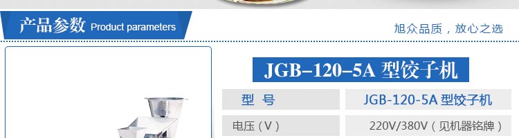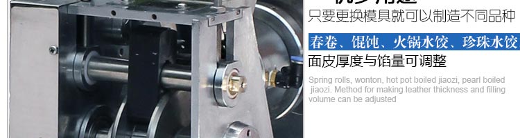 JGB-120-5A型輸送帶餃子機(jī),本機(jī)是一款可生產(chǎn)各種肉餡、肉菜混合餡、全菜餡及其他種餡餃子的設(shè)備。一機(jī)多用途,只要更換模具,就可制作不同的食品,如春卷、餛飩、咖喱角、鍋貼等。適用于賓館、飯店、餐廳、團(tuán)體食堂加工,幼兒園、速凍餃子生產(chǎn)。