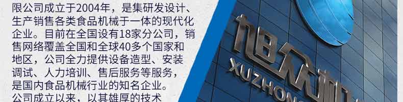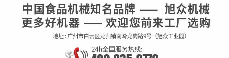 廣州旭眾食品機(jī)械有限公司是一家集科研開發(fā),生產(chǎn)設(shè)計(jì),營(yíng)銷服務(wù)為一體的現(xiàn)代化生產(chǎn)企業(yè)?,F(xiàn)代化生產(chǎn)車間,精湛制造技術(shù),所產(chǎn)機(jī)械歷經(jīng)市場(chǎng)重重考驗(yàn),不斷贏得海內(nèi)外客戶的贊譽(yù)。