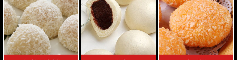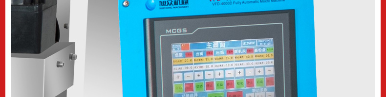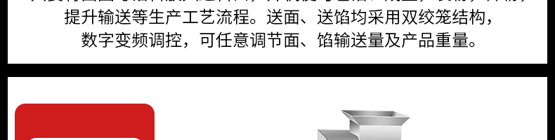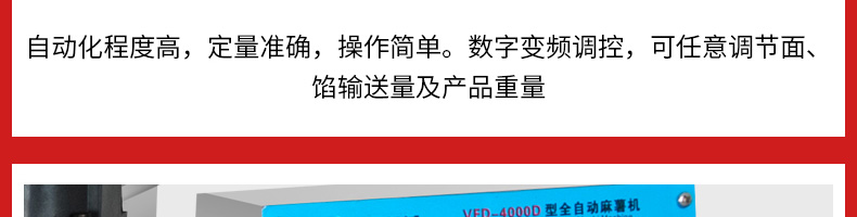 VFD-4000D麻薯機(jī),操作簡單定量準(zhǔn)確只要將面團(tuán)與餡料放入進(jìn)料口,開機(jī)便可包餡、成型,裹粉,篩粉,提升輸送等生產(chǎn)工藝流程。送面、送餡均采用雙絞籠結(jié)構(gòu),數(shù)字變頻調(diào)控,可任意調(diào)節(jié)面、餡輸送量及產(chǎn)品重量。