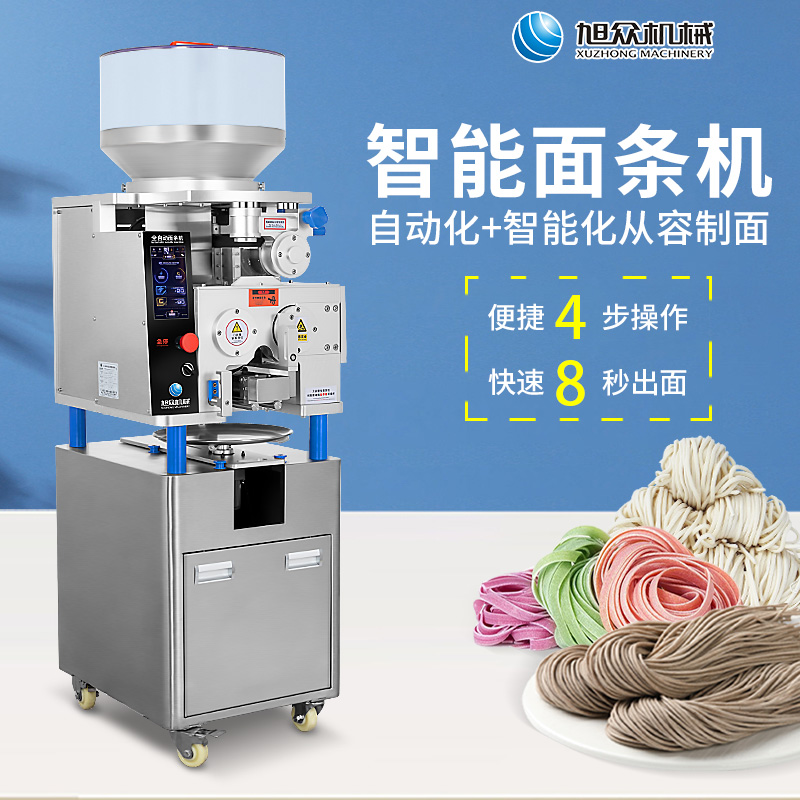 XZ-M800面條機(jī),制作多種面條:拉面、小面、牛肉面、韭葉面板面、褲帯面、蔬菜面、水果面、雜糧面8秒快速出面人性化設(shè)計,更便捷更高效與同類型機(jī)器相比,出面更快、秒換刀具。全不銹鋼刀組全不銹鋼可拆卸刀組,一秒更換防腐蝕抗氧化,清洗方便。