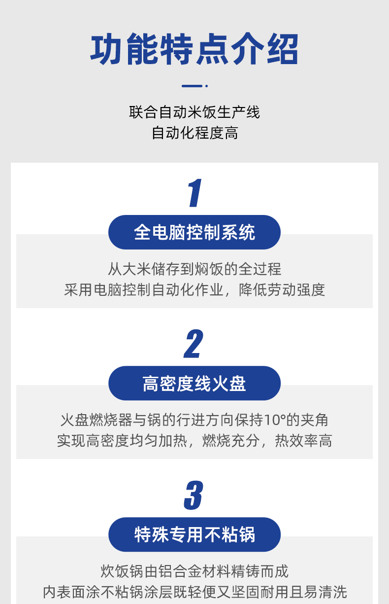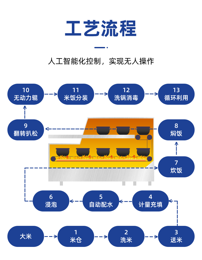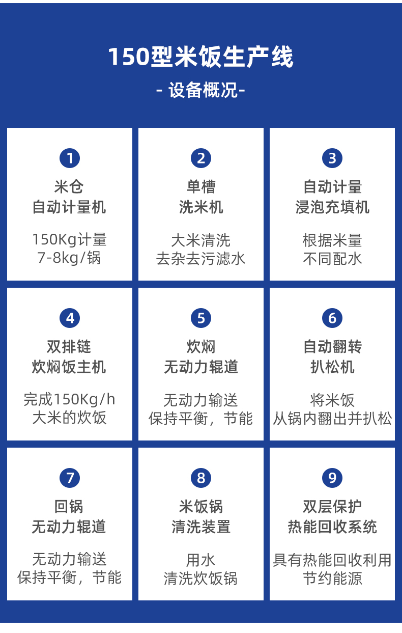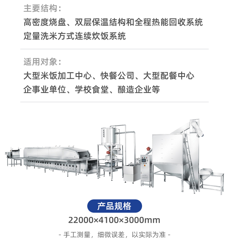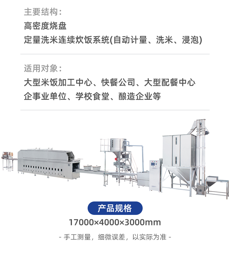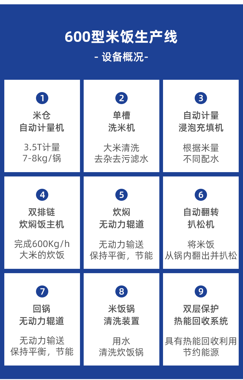 米飯生產(chǎn)線,主要結(jié)構(gòu):不銹鋼箱體,密閉不銹鋼飯盤,自動(dòng)加熱循環(huán)系統(tǒng)。適用對象:大型米飯加工中心、快餐公司、大型配餐中心企事業(yè)單位、學(xué)校食堂、釀造企業(yè)等。實(shí)力大咖商用好幫手。提供培訓(xùn)、指導(dǎo)和工藝傳授,品牌服務(wù)有保障。