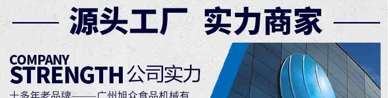 廣州旭眾食品機械有限公司是一家集科研開發(fā),生產(chǎn)設(shè)計,營銷服務(wù)為一體的現(xiàn)代化生產(chǎn)企業(yè)?,F(xiàn)代化生產(chǎn)車間,精湛制造技術(shù),所產(chǎn)機械歷經(jīng)市場重重考驗,不斷贏得海內(nèi)外客戶的贊譽。