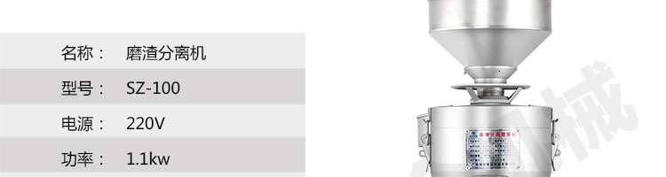 SZ-100-磨渣分離機(jī)系列,適用于把豆制品磨碎分離漿和渣;適用于豆制品廠、飲食服務(wù)業(yè)、食堂、飯店及個(gè)體商戶使用。