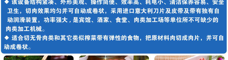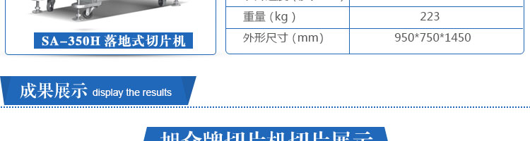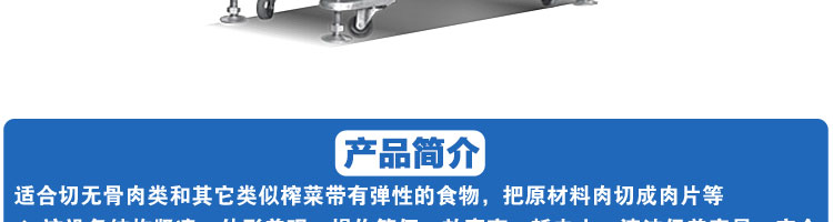 SA-350H 全自動落地式切片機(jī),適合切無骨肉類和其他類似榨菜帶有彈性的食物,把原材料肉切成肉片,并可自動成卷狀??汕信H馄?、羊肉片等