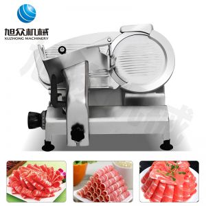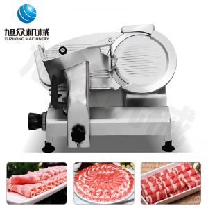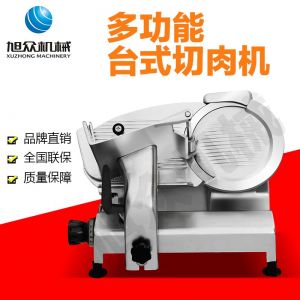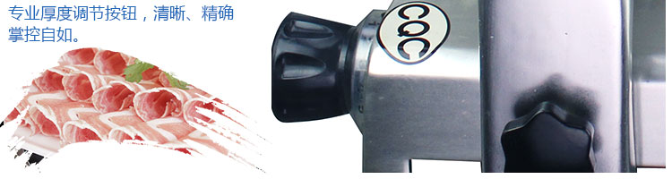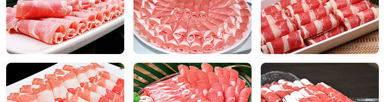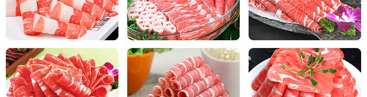 臺(tái)式全自動(dòng)切片機(jī),適合切無骨肉類和其他類似榨菜帶有彈性的食物,把原材料肉切成肉片,并可自動(dòng)成卷狀??汕信H馄?、羊肉片等