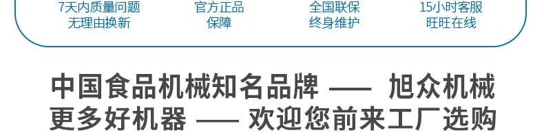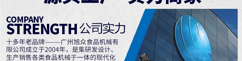 廣州旭眾食品機(jī)械有限公司是一家集科研開發(fā),生產(chǎn)設(shè)計,營銷服務(wù)為一體的現(xiàn)代化生產(chǎn)企業(yè)?,F(xiàn)代化生產(chǎn)車間,精湛制造技術(shù),所產(chǎn)機(jī)械歷經(jīng)市場重重考驗,不斷贏得海內(nèi)外客戶的贊譽(yù)。
