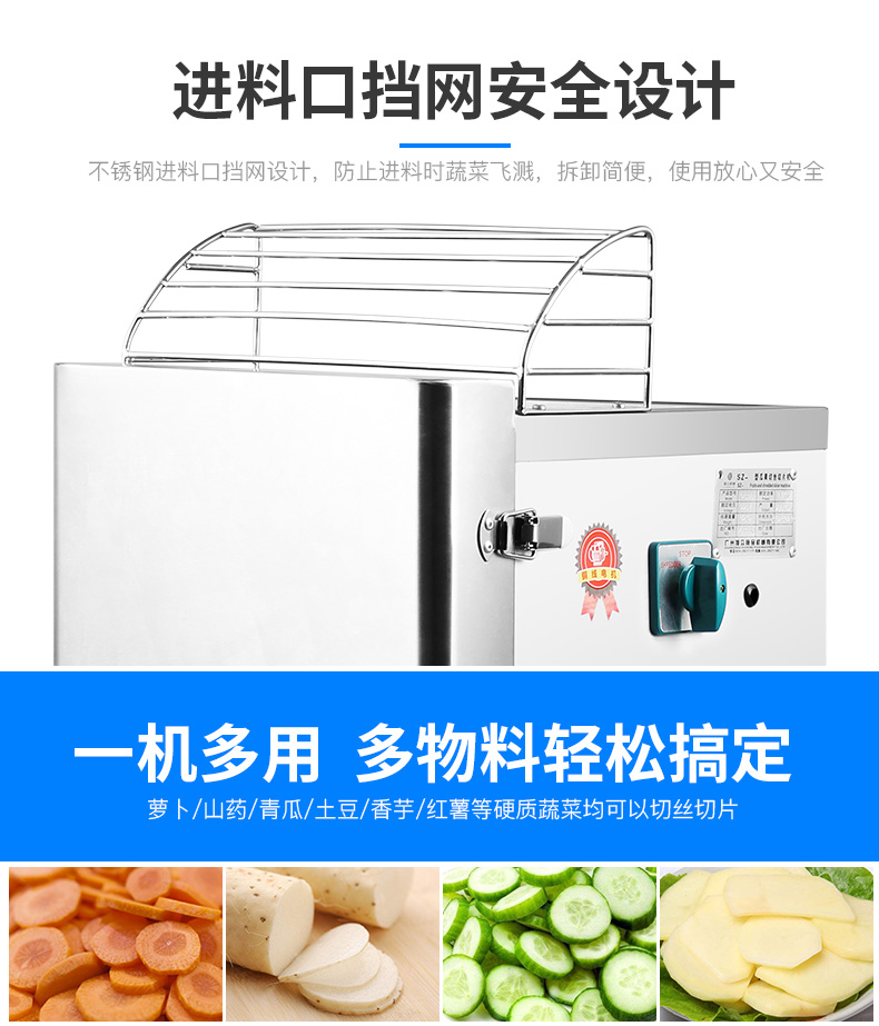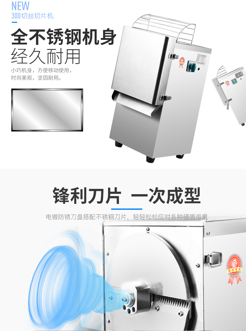 300型瓜果切絲切片機(jī),高效便捷、一次成型、每小時(shí)可切200-300KG。全不銹鋼機(jī)身經(jīng)久耐用小巧機(jī)身,方便移動(dòng)使用,時(shí)尚美觀,堅(jiān)固耐用。鋒利刀片、一次成型。電鍍防銹刀盤搭配不銹鋼刀片,輕輕松松應(yīng)對各種硬質(zhì)瓜果。