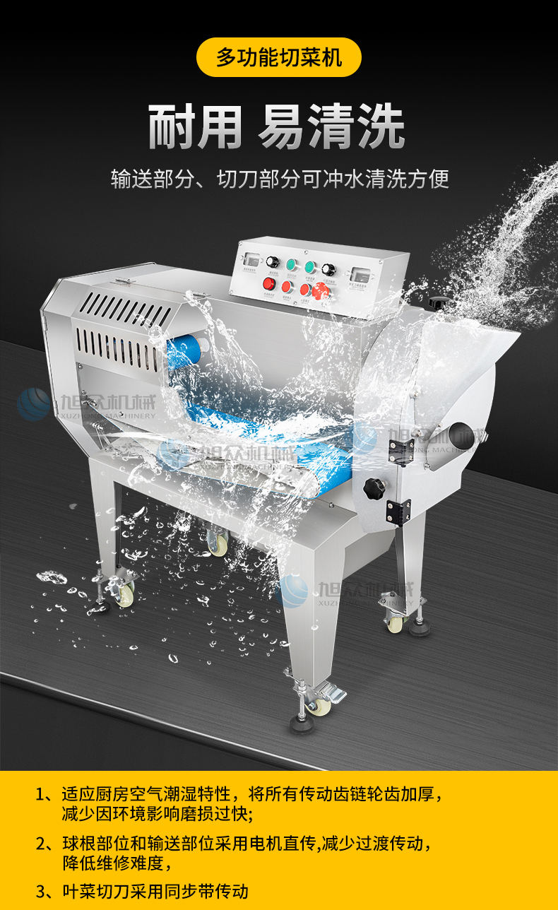 XZ-688A切菜機,占地使用面積小機器小,省空間,適合飯店、食堂、酒店等使用。省事省力省人工1小時加工2000斤葉菜切刀速度為1104轉/分,切絲、切片、切丁、刀速371轉/分。