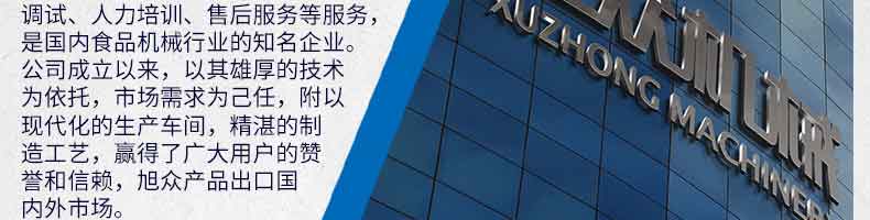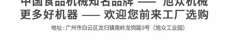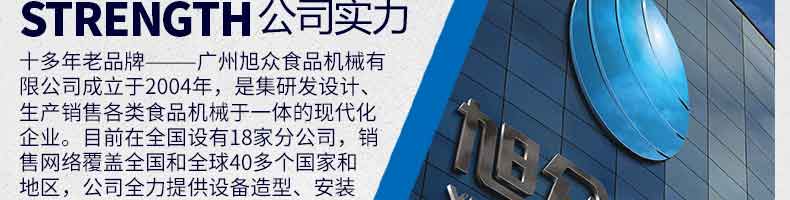 廣州旭眾食品機械有限公司是一家集科研開發(fā),生產(chǎn)設計,營銷服務為一體的現(xiàn)代化生產(chǎn)企業(yè)?,F(xiàn)代化生產(chǎn)車間,精湛制造技術,所產(chǎn)機械歷經(jīng)市場重重考驗,不斷贏得海內外客戶的贊譽。