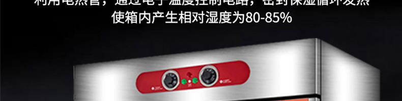 VF系列醒發(fā)箱,熱風循環(huán)、恒溫發(fā)酵。熱氣均勻分布,多盤發(fā)酵制作美味一樣到底。恒溫醒發(fā)箱完美解決利用電熱管,通過電子溫度控制電路,密封保濕循環(huán)發(fā)熱使箱內(nèi)產(chǎn)生相對濕度為80-85%
