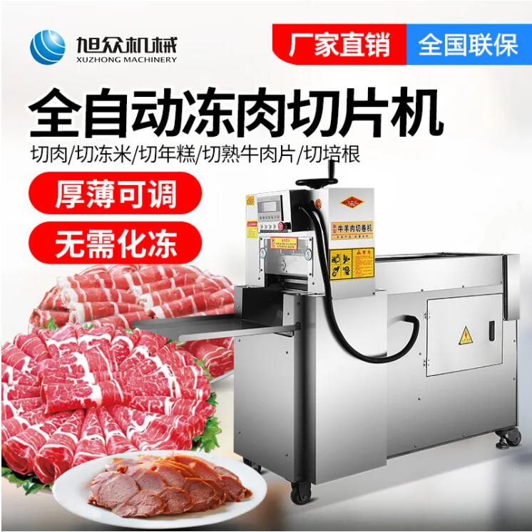 旭眾凍肉切片機(jī),是模擬手工切片的原理,采用變速箱傳動(dòng),自動(dòng)進(jìn)料、自動(dòng)切片,一次可切2卷(4卷),羊肉或肥牛。