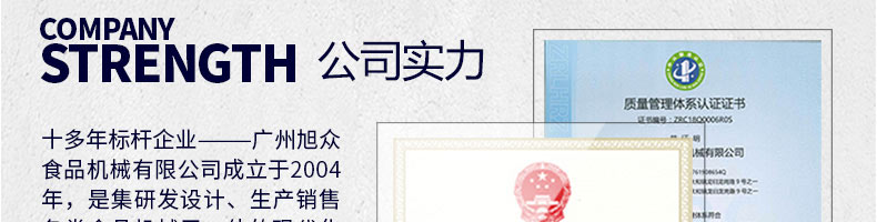 廣州旭眾食品機械有限公司是一家集科研開發(fā),生產設計,營銷服務為一體的現代化生產企業(yè)?,F代化生產車間,精湛制造技術,所產機械歷經市場重重考驗,不斷贏得海內外客戶的贊譽。