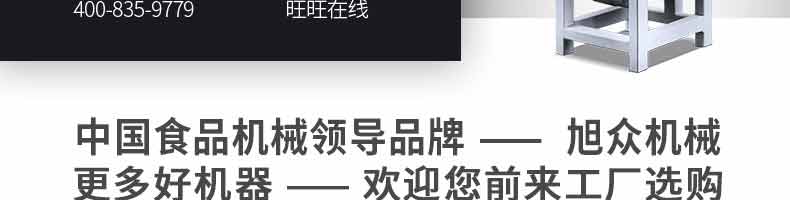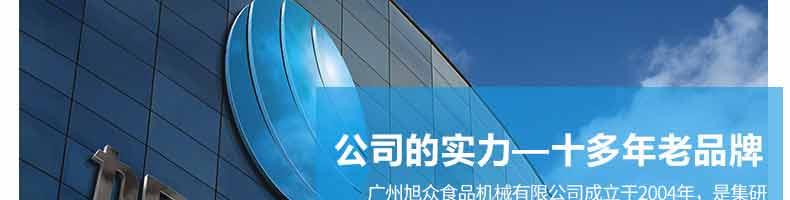 廣州旭眾食品機(jī)械有限公司是一家集科研開(kāi)發(fā),生產(chǎn)設(shè)計(jì),營(yíng)銷服務(wù)為一體的現(xiàn)代化生產(chǎn)企業(yè)。現(xiàn)代化生產(chǎn)車(chē)間,精湛制造技術(shù),所產(chǎn)機(jī)械歷經(jīng)市場(chǎng)重重考驗(yàn),不斷贏得海內(nèi)外客戶的贊譽(yù)。