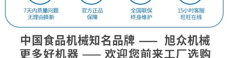 廣州旭眾食品機(jī)械有限公司是一家集科研開發(fā),生產(chǎn)設(shè)計(jì),營(yíng)銷服務(wù)為一體的現(xiàn)代化生產(chǎn)企業(yè)?,F(xiàn)代化生產(chǎn)車間,精湛制造技術(shù),所產(chǎn)機(jī)械歷經(jīng)市場(chǎng)重重考驗(yàn),不斷贏得海內(nèi)外客戶的贊譽(yù)。