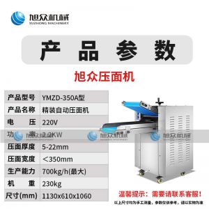 YMZD-350A自動壓面,商用全自動壓面機(jī)快速揉面,自動壓面包子餃子慢饅頭偭面館等場所適用不銹鋼機(jī)身厚薄可調(diào)、強(qiáng)勁動力??梢匝h(huán)壓面、揉面,模擬手工揉面,不破壞面筋,面皮的口感細(xì)膩。