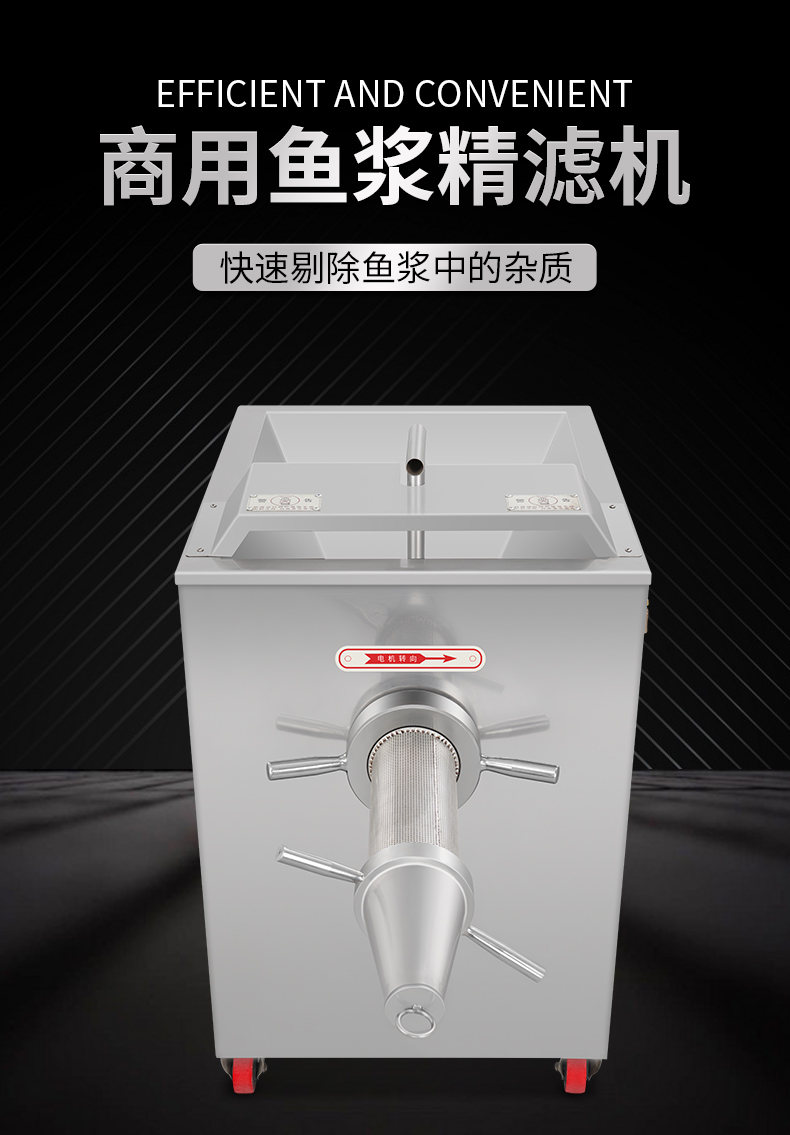 SZJ-300魚漿精濾機(jī),商用創(chuàng)業(yè)魚漿精濾機(jī),用于配套魚肉采肉機(jī)進(jìn)行魚肉過濾雜質(zhì)。節(jié)省人工開支,人工加工魚漿,效率慢剔除魚細(xì)骨,不干凈,有了魚漿精濾機(jī),一人就可以很快制作多種魚漿。