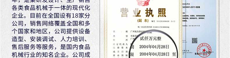 廣州旭眾食品機械有限公司是一家集科研開發(fā),生產(chǎn)設計,營銷服務為一體的現(xiàn)代化生產(chǎn)企業(yè)。現(xiàn)代化生產(chǎn)車間,精湛制造技術,所產(chǎn)機械歷經(jīng)市場重重考驗,不斷贏得海內(nèi)外客戶的贊譽。