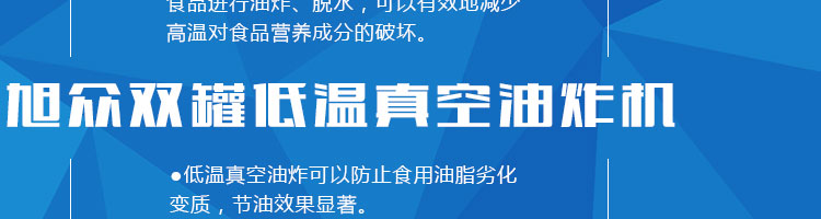 zk-1200雙罐低溫真空油炸機(jī),適用于水果類、蔬菜類、干果類、水產(chǎn)品機(jī)畜禽肉類等。油炸食品不易褪色、褐色,可以保持原料本身的顏色